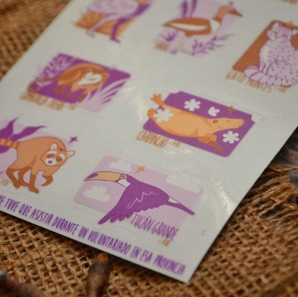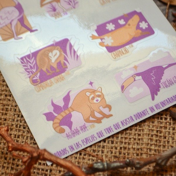 Plancha de stickers en vinilo transparente con base blanca. Resistentes al agua.